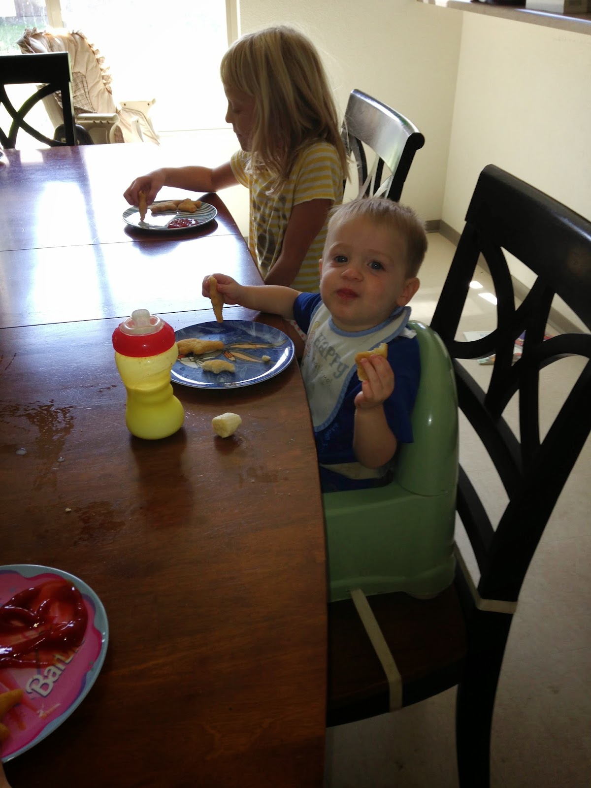 Then we get our special big firsts with Vaughn still. This is a picture commemorating my baby moving to the table and out of a high chair for good. Still can't believe it! He's getting so big so fast! I can't tell if Vaughn or the other kids were more excited to sit altogether at the table. Cracked me up.